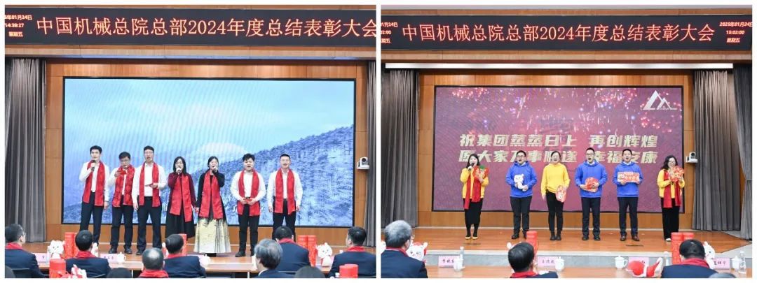 大會(huì)現(xiàn)場(chǎng)氣氛喜慶熱烈?!对鲂刨x能 攜手同行》短片,回顧2024年豐碩成果、展望2025年發(fā)展前景。各部門以視頻方式送來(lái)新春祝福。大會(huì)向光榮在院30年、20年、10年的干部職工頒發(fā)紀(jì)念章;對(duì)涌現(xiàn)出的先進(jìn)集體和優(yōu)秀個(gè)人進(jìn)行了表彰。集團(tuán)領(lǐng)導(dǎo)為獲獎(jiǎng)代表頒獎(jiǎng),獲獎(jiǎng)代表感言分享成長(zhǎng)喜悅、表達(dá)美好祝福。
